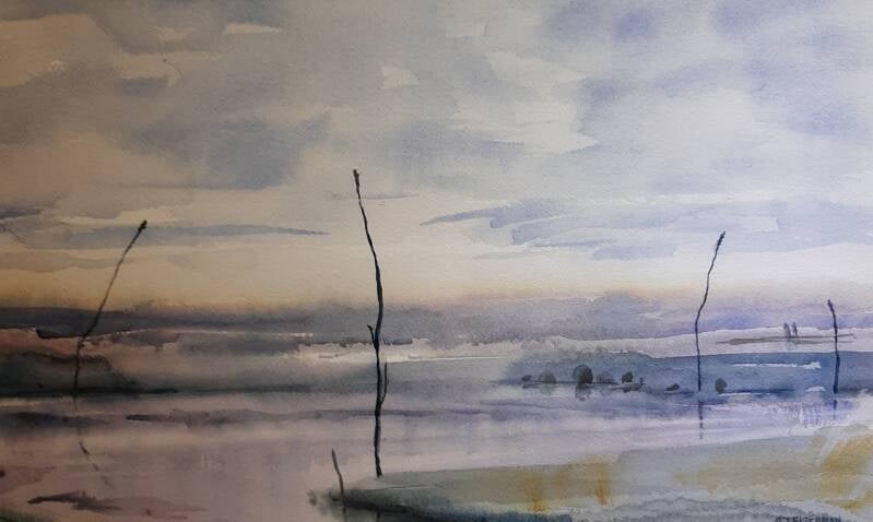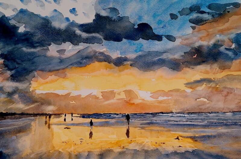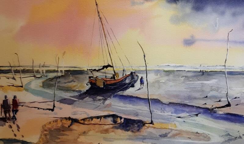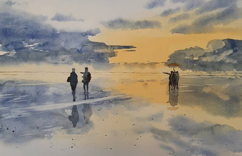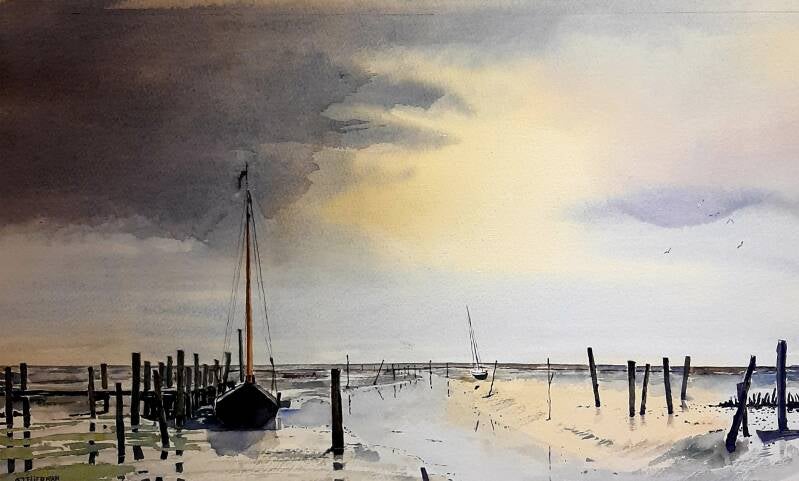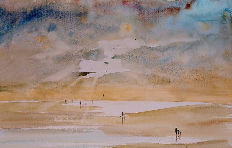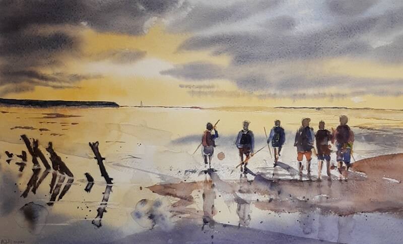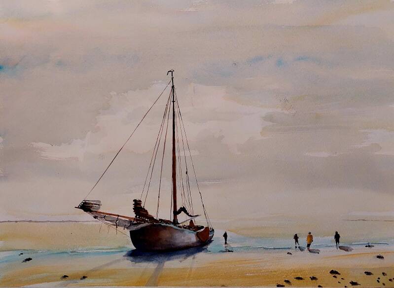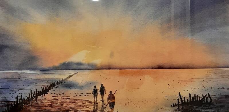 droogvallen en wandelen bij laagtij - aquarel/pastel