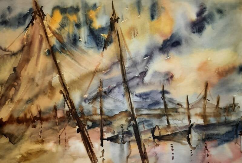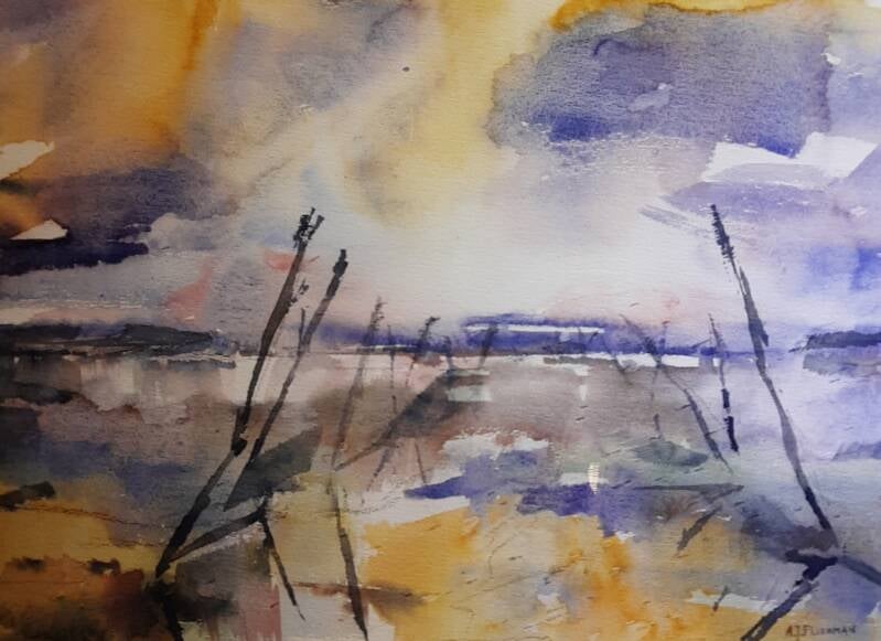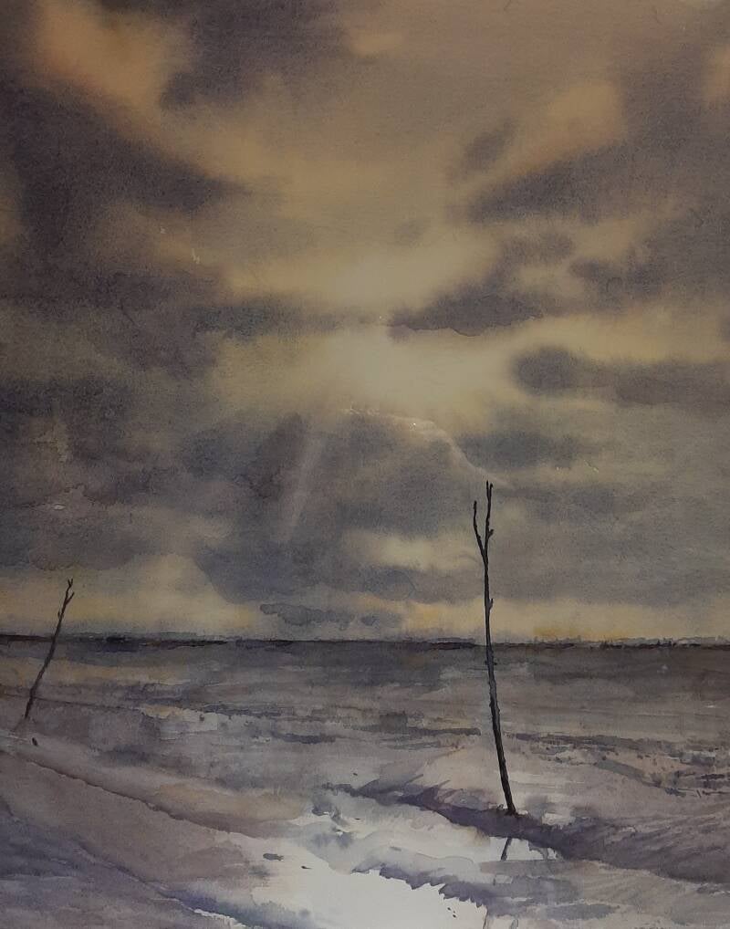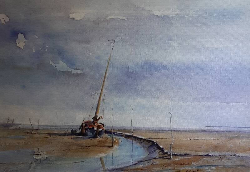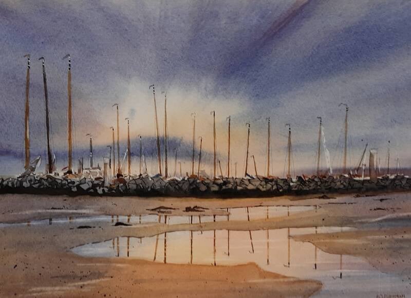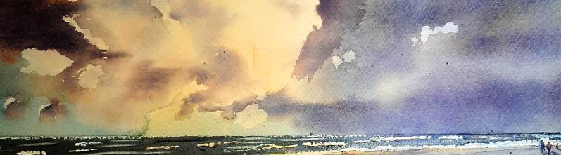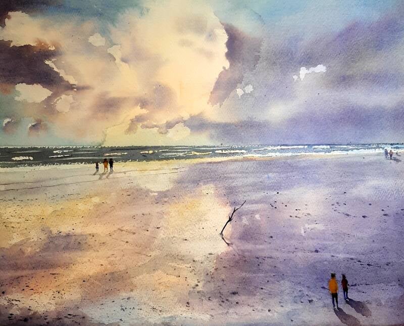 droogvallen en wandelen bij laagtij - aquarel/pastel