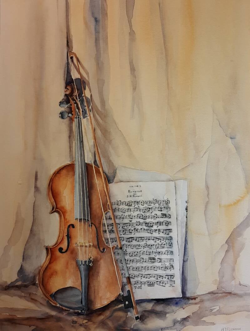 viool en bladmuziek - aquarel